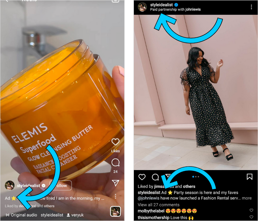 Instagram/Meta: "Paid partnership" tag and branded content tools